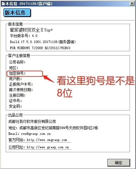 登录软件,点击【帮助】,点击【版本信息】,即可查询加密狗号。