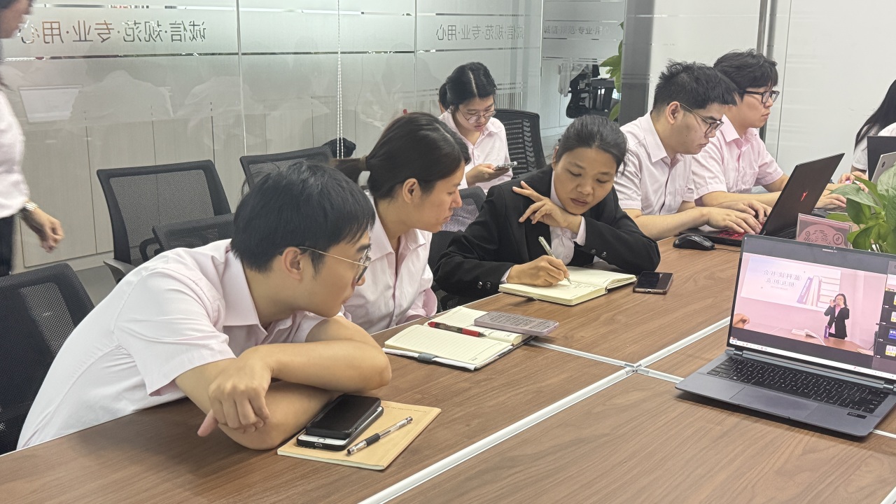 由财务部绮莹总结会议内容,倡导摒弃“各管一摊”思维,树立“团队一盘棋”意识;明确财务相关要求,倡导销售同事严格按单执行财务建议,以实际行动践行相互担责。